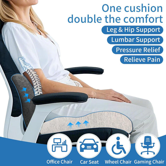 Memory Foam Seat Cushion,Office Chair Cushion with Lumbar Support for Back Pressure Relief, Car Seat Cushion with Adjustable Strap,Sciatica Pad Cushions for Car,Truck, Desk,Gaming Chair
